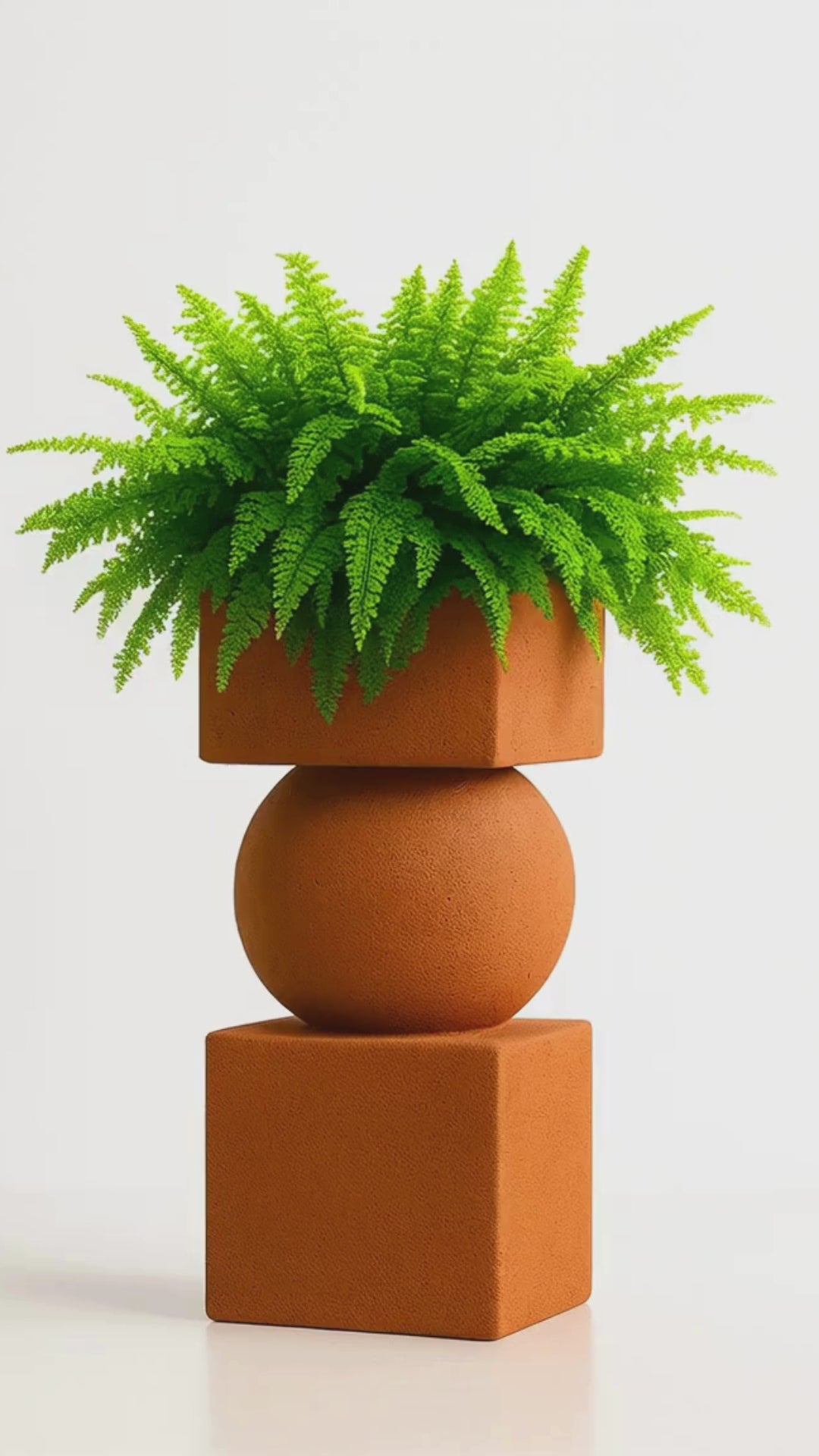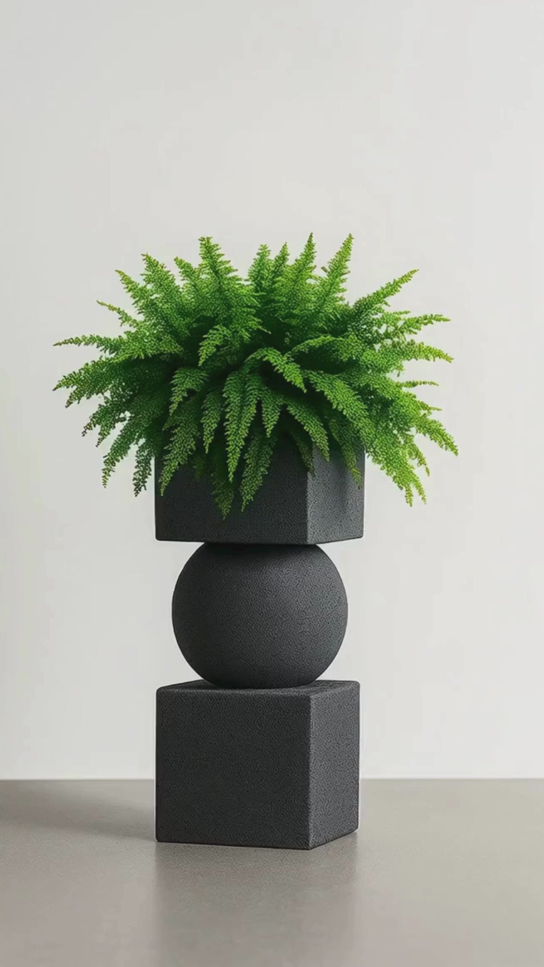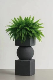 "Stacks" is a masterful interplay of geometry and nostalgia, a planter that draws its essence from the game Tetris—a playful yet profound metaphor for the order and chaos of life. This sculpture rises as a deliberate tower of alternating cubes and spheres, their contrasting forms locked in a dance of balance and tension. The structure feels alive, as though each piece has been meticulously placed to defy gravity, whispering stories of precision and spontaneity.